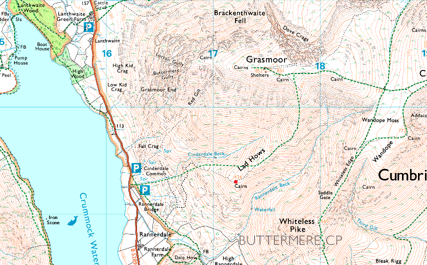 Lanthwaite Green – Gasgale Gill – Dove Crags Arête – Grasmoor – Lad Hows – Cinderdale Common – Hause Point – Lake Road – Lanthwaite Green |
