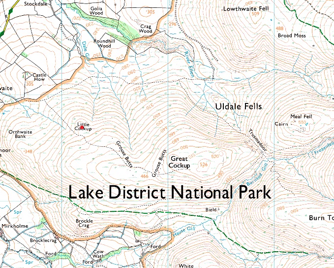 Peter House Farm - Horsemoor Hills - Orthwaite - Orthwaite Bank - Little Cockup - Great Cockup - Trusmadoor - Meal Fell - Little Sca Fell - Great Sca Fell - Knott - Frozen Fell - Burn Tod - Trusmadoor - Burntod Gill - Dash Valley - Horsemoor Hills - Orthwaite |
