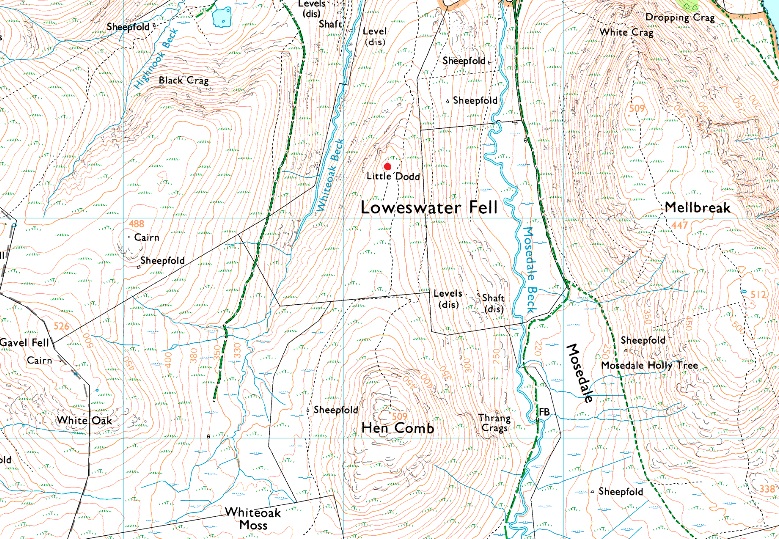 Loweswater - Church Bridge - Mosedale - Mosedale Beck - Mine Workings - Hen Comb - Little Dodd - Mosedale Beck |