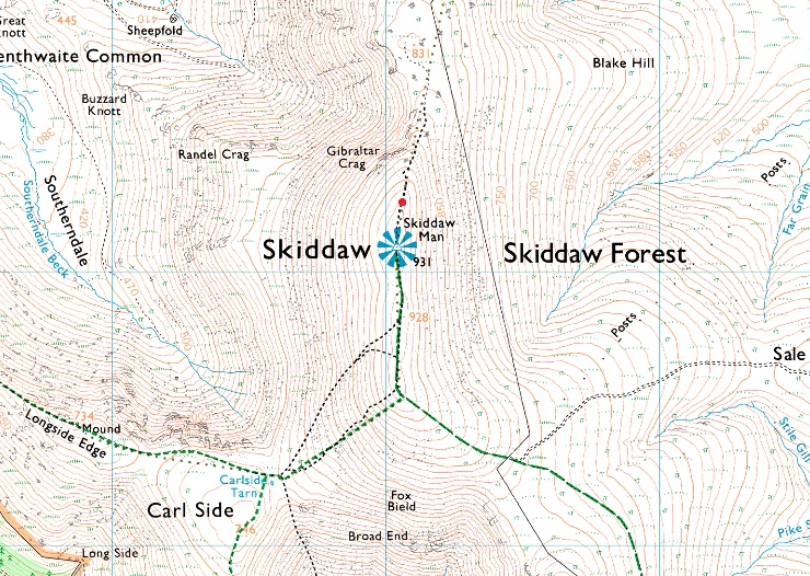 Gale Road - Latrigg - Gale Road - Applewaite - Millbeck - Lyzzick Wood - Dodd - Long Doors - White Stones - Carl Side - Long Side - Ullock Pike - Long Side - Skiddaw - Bakestall - Skiddaw - Skiddaw Little Man - Skiddaw Lesser Man - Jenkin Hill - Lonscale Fell - Whit Beck - Gale Road