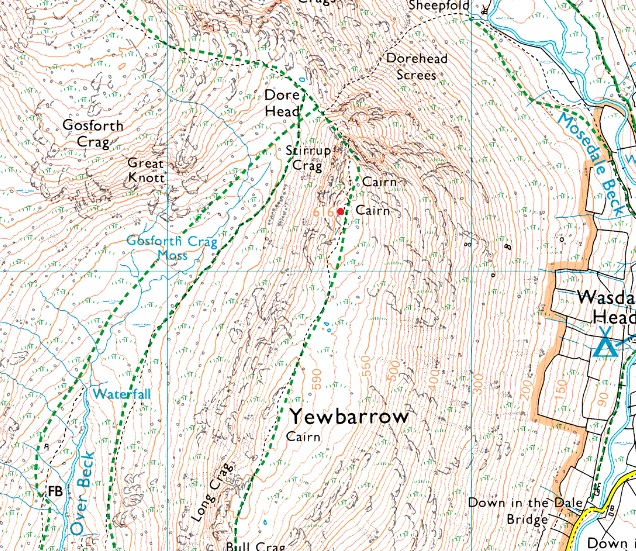 Overbeck Bridge - Dropping Crag - Bell Rib - Yewbarrow South Top - Yewbarrow North Top - Dore Head - Gosforth Crag Moss - Over Beck - Overbeck Bridge |
