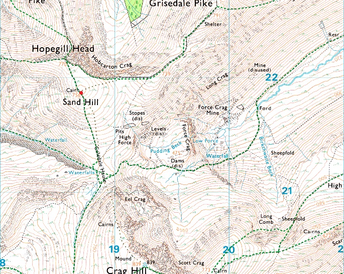 Grisedale Pike, Whiteside & Force Crag Mine |