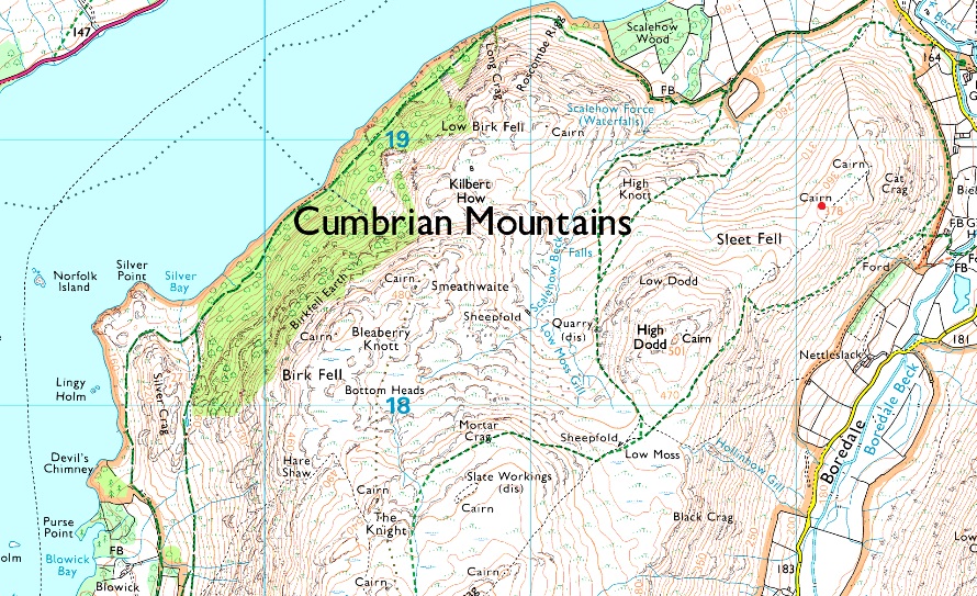 Low Birk Fell - Bleaberry Knott - The Knight - Place Fell - High Dodd - Sleet Fell |