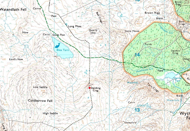 Wythburn - Wyth Burn - Wythburn Head - The Bog - Middle How - Greenup Edge - Ullscarf - Standing Crag - Bell Crags - Long Moss - High Tove - Armboth Fell - Armboth - Road West of Thirlmere - Thirlmere Dam - Turnip Corner |