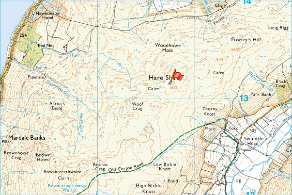 Rosgill Moor – Scalebarrow Tarn – Scalebarrow Knott – Harper Hills – Powley’s Hill – Hare Shaw – Old Corpse Road – Selside End – Selside Pike – Rowantreethwaite Cairn – Aaron’s Bield –High Naddle Forest – Wallow Crag – Hugh’s Laithes Pike – Naddle Beck – Naddle Farm – Scalebarrow Knott – Rosgill Moor |