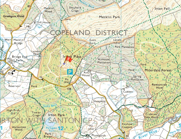 Irton Road Railway Station (Eskdale Green) - Giggle Alley - Porterthwaite - Miterdale Forest - Irton Fell - Ancient Cairn - Irton Pike - Bowerhouse Inn - Irton Road Railway Station (Eskdale Green)