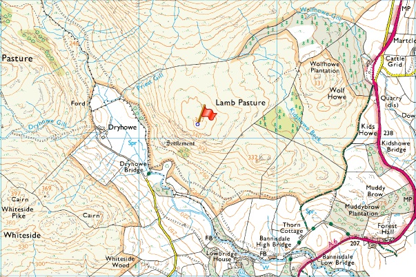 Dryhowe Bridge - Whiteside Pike - Todd Fell - Capplebarrow - Ancrow Brow - Borrowdale Moss - Long Crag (Bannisdale) - White Howe - Borrowdale Head - Lamb Pasture - Dryhowe Bridge |