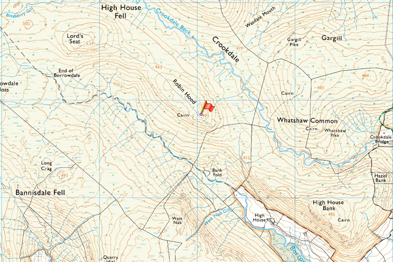 Hause Foot – Crookdale Bridge – High House Bank – Robin Hood – Lord’s Seat – Buck Crags – Harrop Pike – Great Yarlside – Wasdale Pike – Little Yarlside – Wasdale Mouth – Whatshaw Common – Crookdale Beck – Crookdale Bridge |