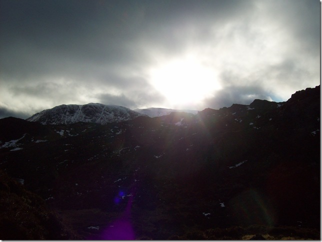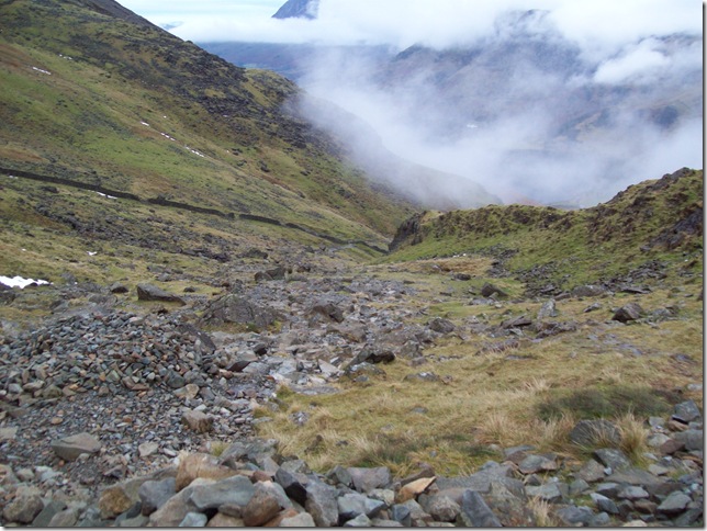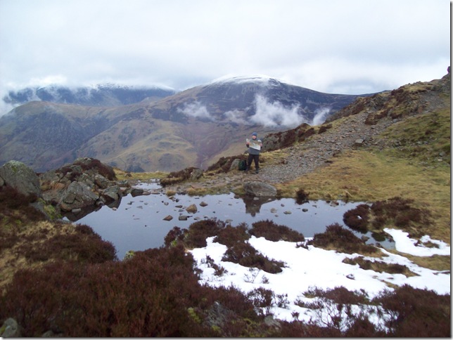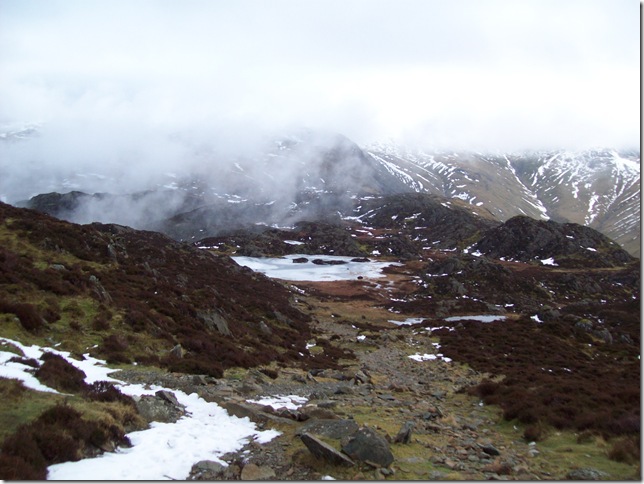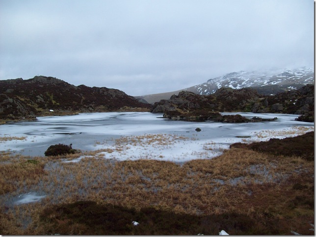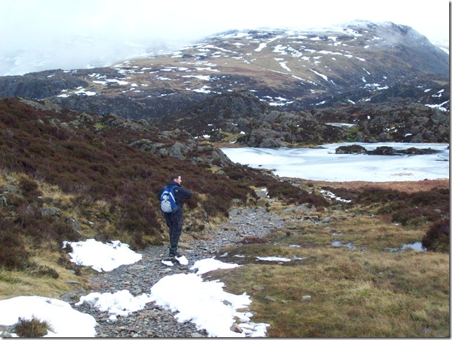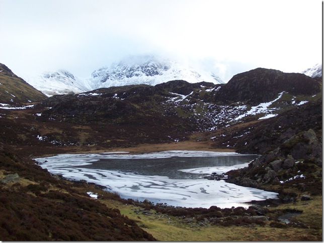 Making our way down to very Frozen Inominate Tarn.