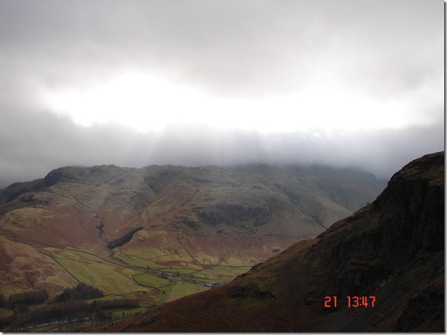 The sun trying its best to get through the cloud over Pike of Blisco.