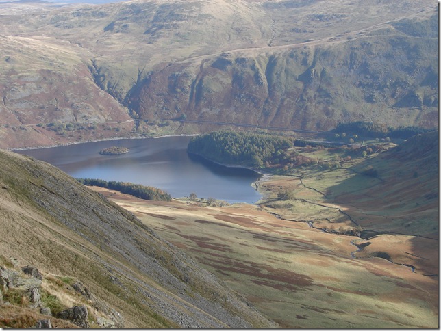 Leaving a crisp sunny wigan at 8am i arrived at Mardale Road car park round about 9.30am, And as expected there wasn’t a car parking space so it was on the side of the verge with the rest of them!So this is only my second walk talking in as much as four fells on my own & I’m feeling pretty excited ,Its a crisp clear blue sky day & i can clearly see my route from the car park ,so its on with the boots ,clip the camera on to my belt & one last check through my bag making sure the coffee still hot my sandwiches are as usually squashed & I’ve got my Satsuma’s (They are like 4 star to me!) No need for the jacket today so that gets squashed in last!,Its a beautiful day ,One last look at my route & I’m off! |