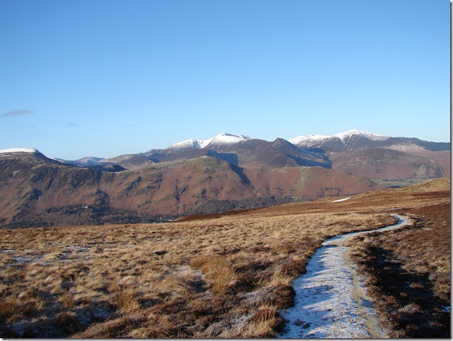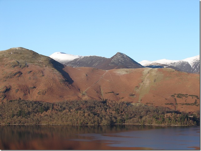 Looking over to Cat Bells ridge & summit with Causey pike ,Sail & a snow covered Crag Hill beyond. |
