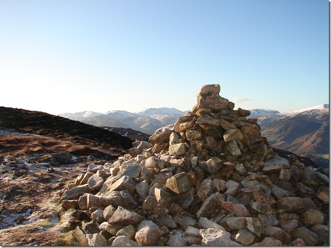 Bleaberry Fell summit cairn ,next is High Seat . |