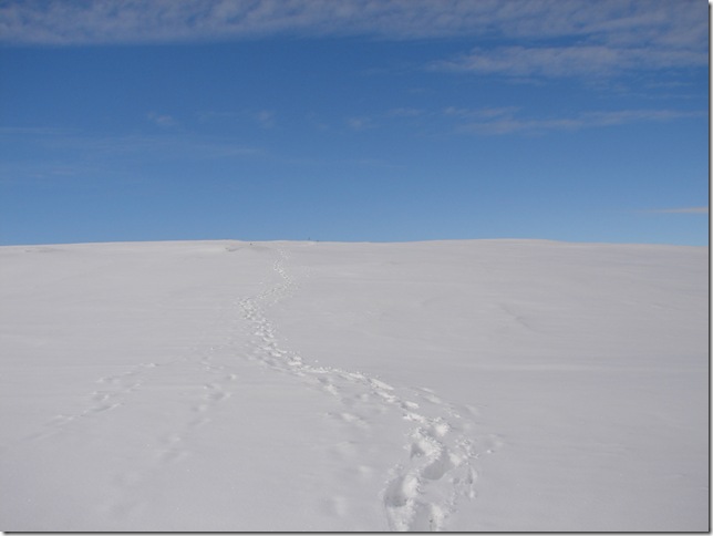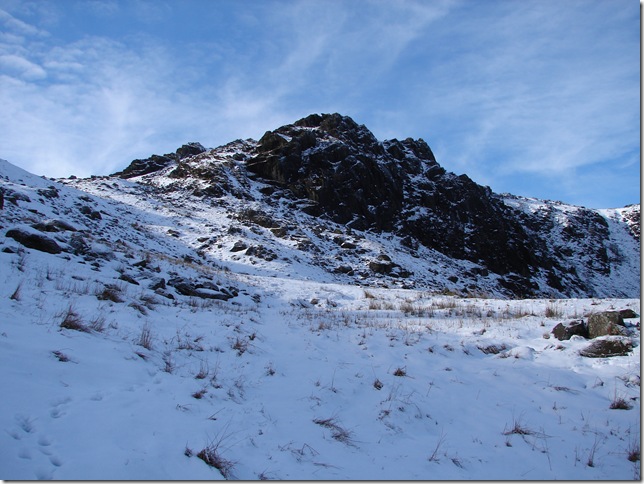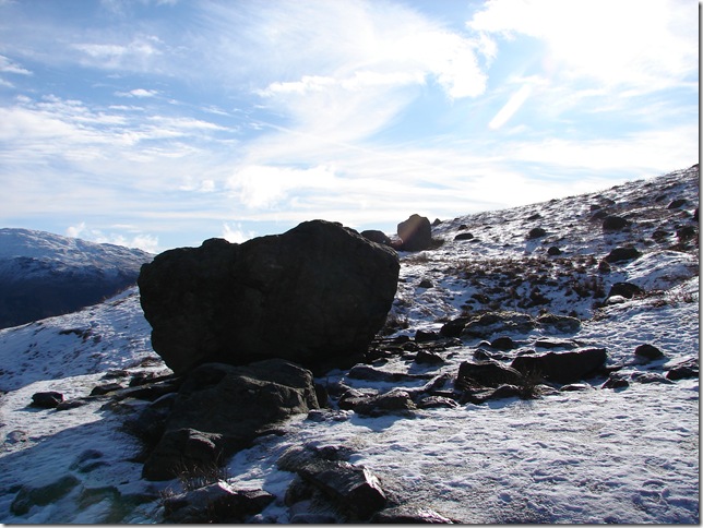 On the approach to Sergeant Man ,the conditions were perfect except for the snow underfoot ,will it hold my weight? went through every footstep, the answer was no of course ! |