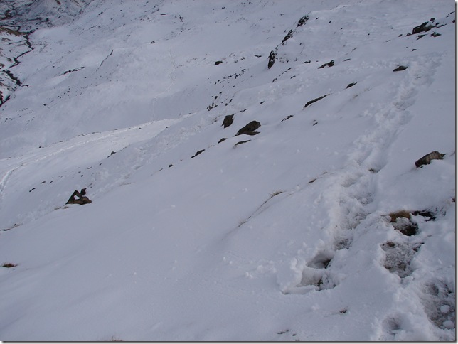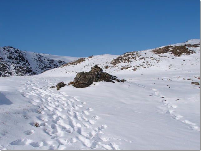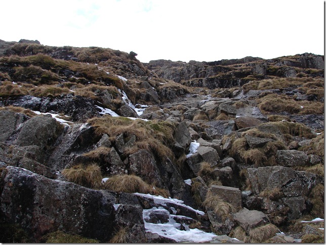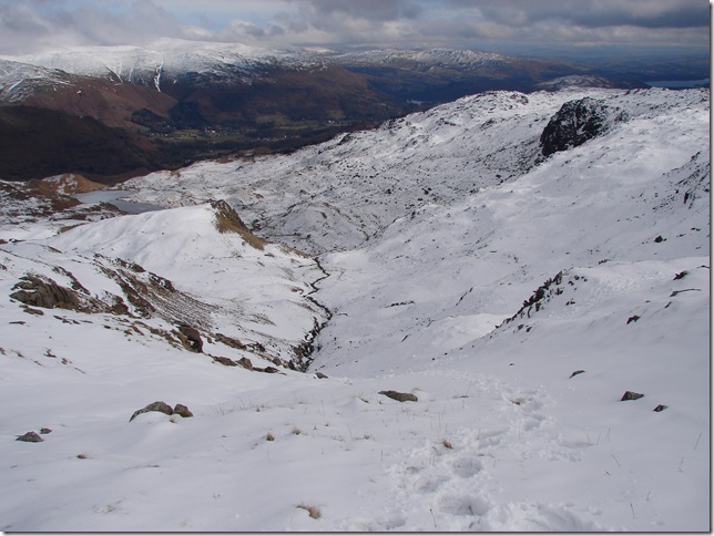 Descending back in to the Easedale valley was a little tricky to say the least ,I guess it wouldn’t cause to much damage If I took a tumble here ,the sun most of warmed the snow up causing it almost to feel slush like underfoot . |