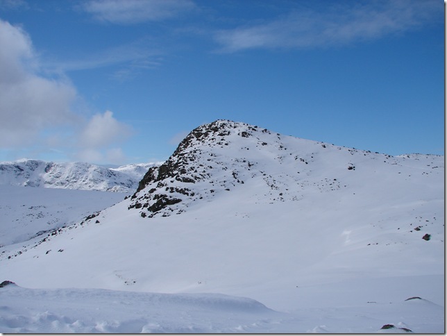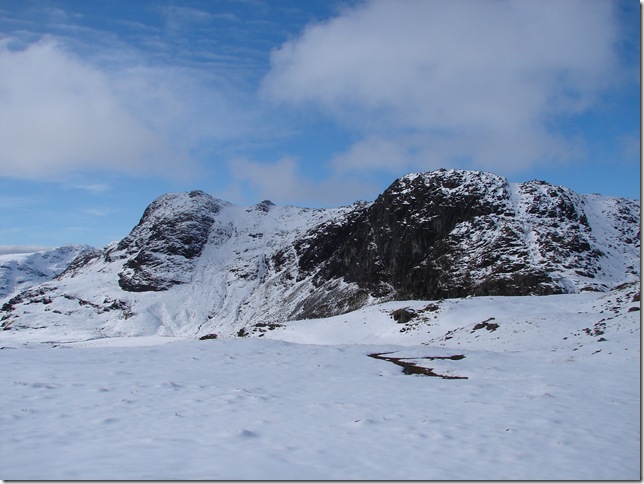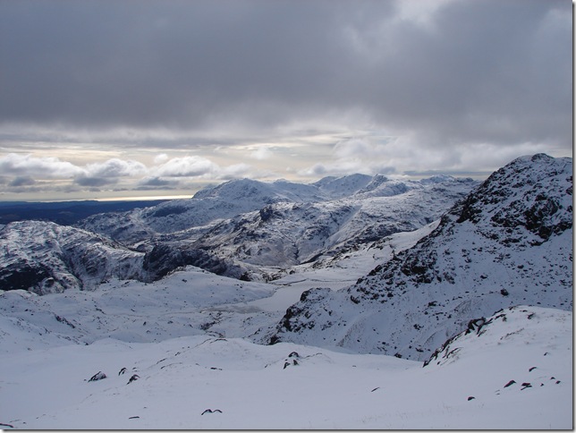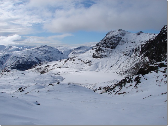 Harrison Stickle this time with its frozen Tarn & right opposite is Lingmoor Fell & the Langdales. |