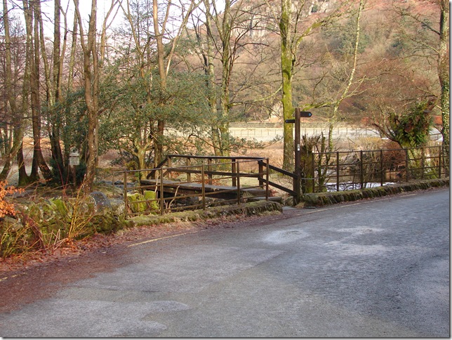 Crossing the small bridge over Easdale Gill . |