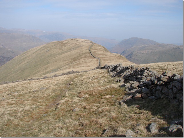 Now approaching the wall that runs parallel with the summit & beyond to Caudale Moor. |