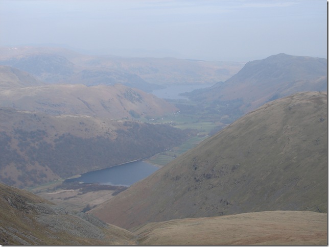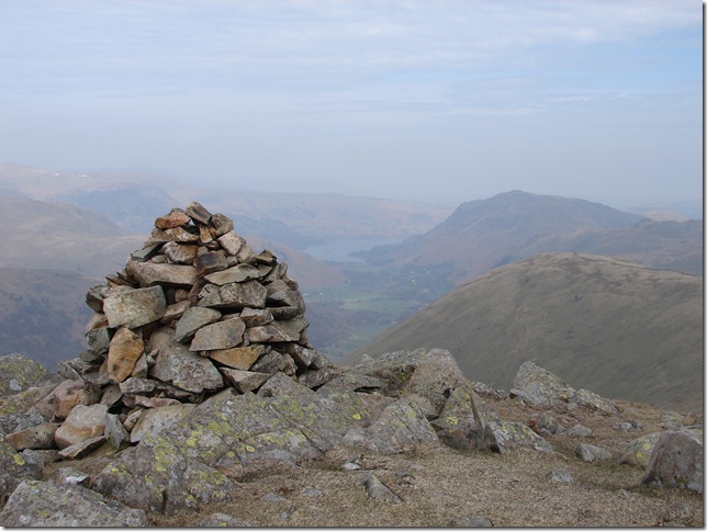 Gray Crag & Place Fell from the second summit cairn, & where’s the sun gone? all I have is haze & no sun! |