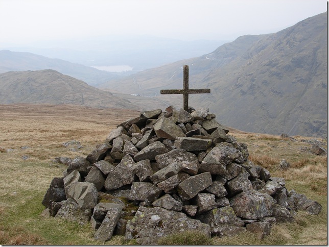 Also found on the Southern tip of the summit is the Mark Atkinson Monument, who died in 1930 & his son William in 1987, both of the Kirkstone Pass Inn seen here, the vague white building in the background. |