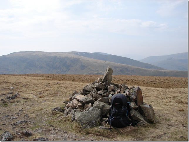 Caudale Moor summit cairn with Red Screes in the background,..time for a cuppa me thinks. |