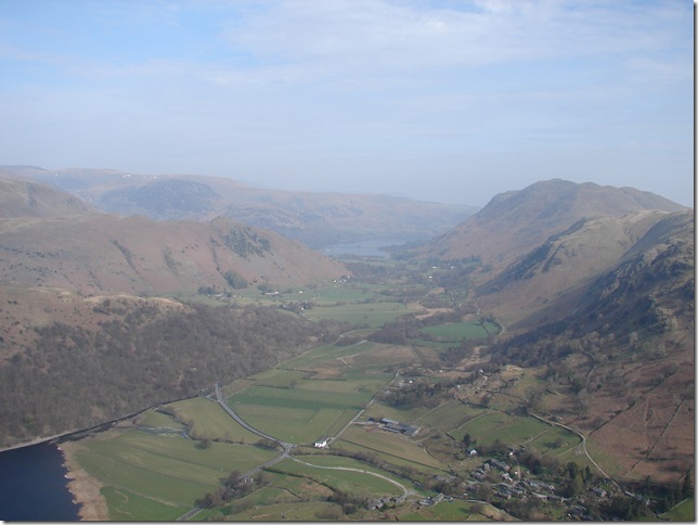Looking down on Hartsop Village & towards the Southern tip of Ullswater, conditions are pretty much the same as last weekend, very warm & very hazy.I cant help but notice how low Brothers Water is looking. |