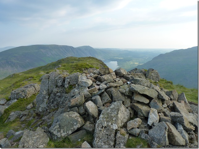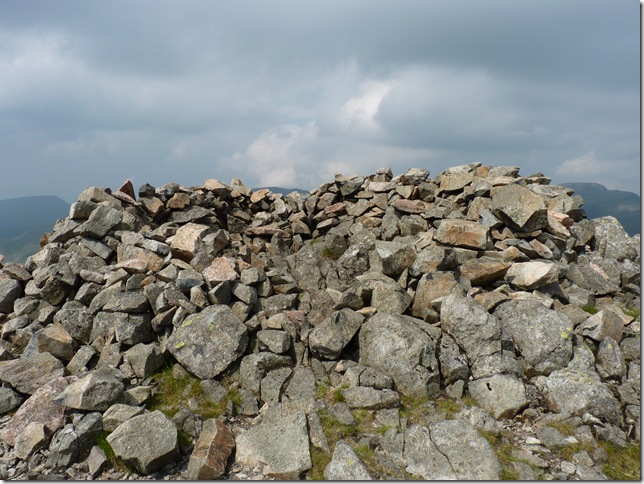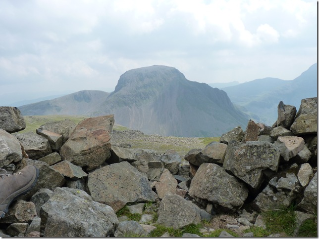 Great Gable from inside the summit shelter on Kirk Fell. |
