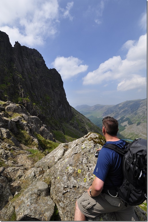 Driving for over two & a half hours certainly isn’t the best way to start a walk as strenuous as The Mosedale Round, as you’ll know your legs stiffen up your back is moulded into the shape of the drivers seat & coupled with a 5am start well, you see where I’m going here..In the car we were discussing a possible route called the High Ascent Route which will indeed take you as close to Pillar Rock with out guide ropes as humanly possible, just the sheer size of Pillar Rock is immensely awe inspiring”I’m here & that is Pillar Rock”was the feeling I got, just to be in its presence is a personal achievement of mine , In no way shape or form am I complaining but yes I will admit this route is a difficult one, lots of ascent & a lot more descent to coincide with breath taking views as I’ve had it does almost certainly take the pain away from the calf’s & thighs, that pint of cool refreshing lager at the end of the day couldn’t of come soon enough, did I say pint? (I meant 6) |
