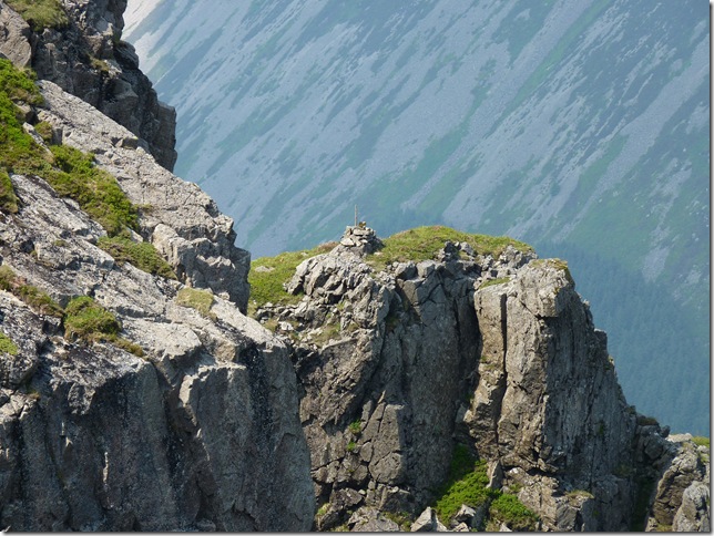 The little Cairn found on the summit of Low Man, & I guess where the Rock Climbers are heading for. |