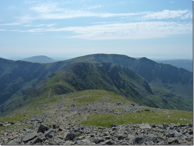 That’s more like it, our final fell of the day with a great ridge like plateau towards the summit, right about now I remember Tim’s mobile loosing its service provider, just like you do when you get of the plane & it then asked you to connect to the local network,.Tim’s mobile was picking Isle Of Man’s local network! |