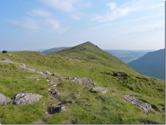 The steep grassy slopes of Kirk Fell, calf’s certainly feeling the pain right about now! |