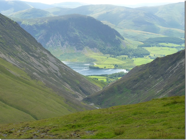 Peering down the valley at the head of Crummock Water & Mellbreak. |
