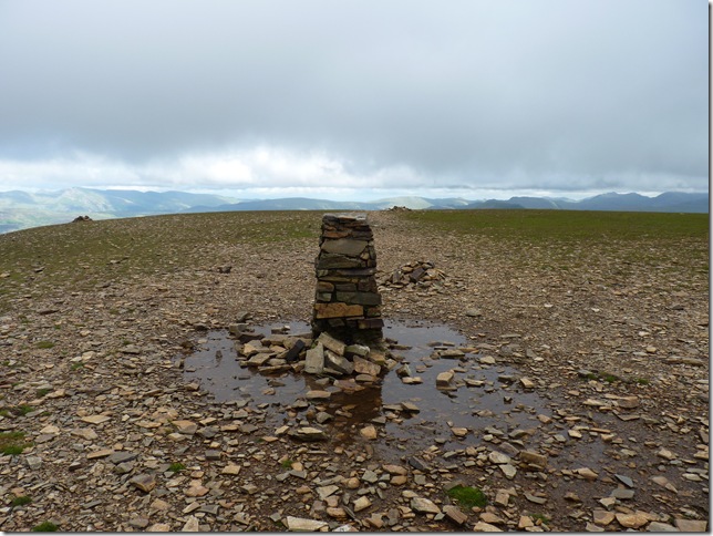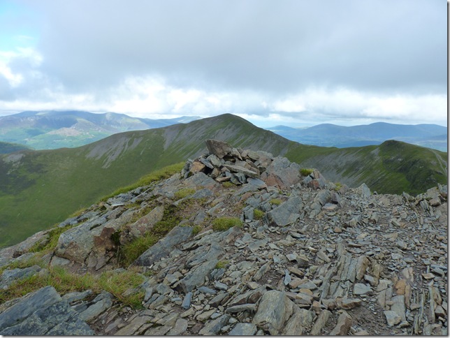 Hopegill Head summit cairn with Grisdale Pike in the background. |