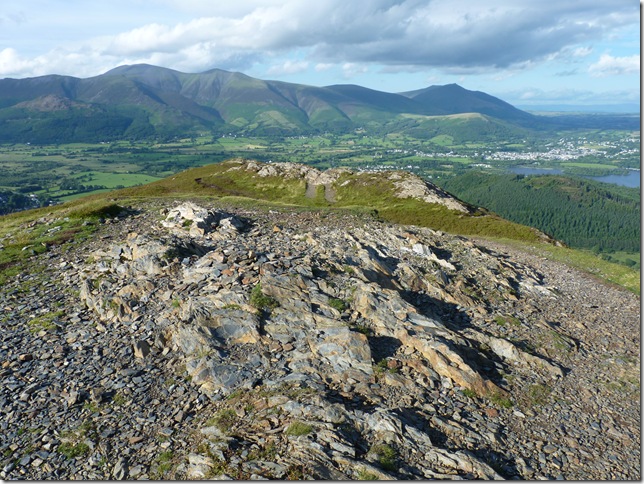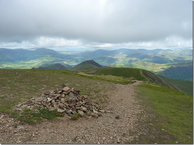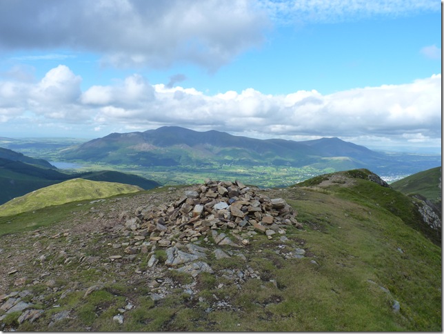 Scar Crags summit cairn with Skiddaw & a distant Blencathra. |