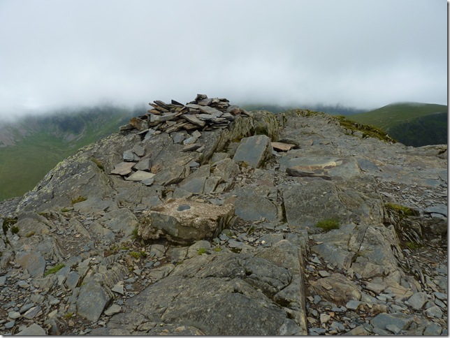 Grisedale Pike summit Cairn & sadly what’s left of the Trig Point, the cloud did come in thick & fast but briefly, so nothing too much to worry about. |