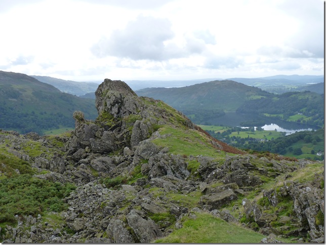 Time to descend Steel Fell, with a great view of Helm Crag & beyond. |