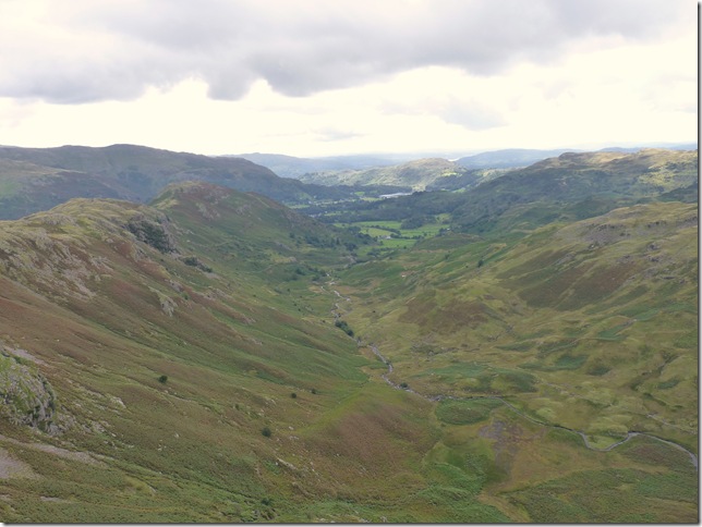 Far Easedale lower centre & my ridge route all the way to Calf Crag on the right, but first I have to summit Helm Crag. |