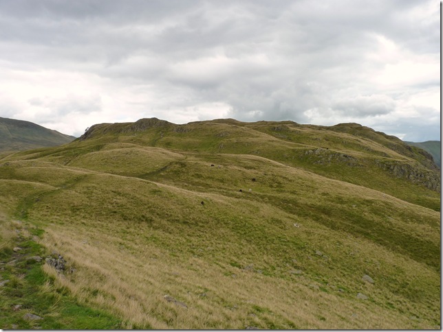 ‘Dead Pike’ the true summit of Steel Fell, with the head of Greenburn just behind, the ridge in the background is Greenup Edge & High Raise. |
