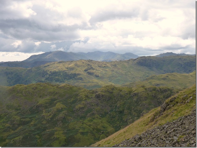 Front to back we have my ridge route & Gibson Knott, Blea Rigg & a distant shot of Wetherlam, Swirl How Great Cars & finally Grey Friar. |