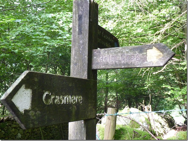 Helm Crag through the trees my first fell of the day, not before crossing New Bridge where I layered down somewhat, I say ‘down’ I mean I unzipped my trousers at the knees turning them into shorts. |
