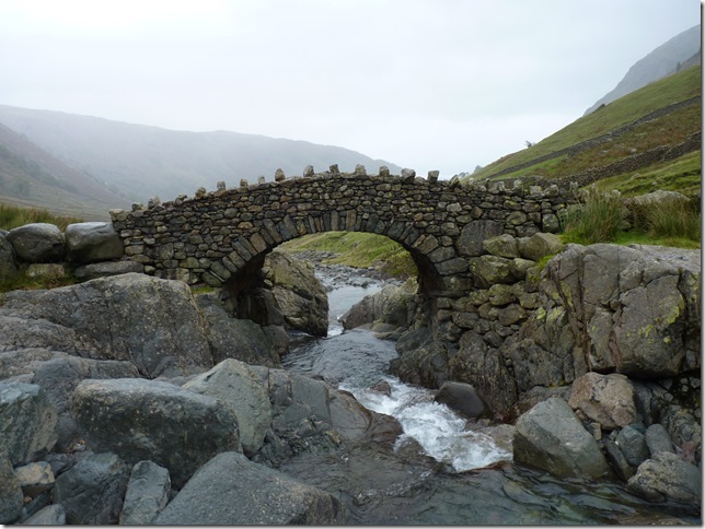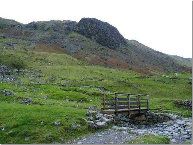 Ok I admit I set out a bit later than normal, which didn’t leave me in good stead for a guaranteed parking space, the car park was packed with mini buses sticking out at all angles (Three Peaks Challengers) but I did manage to get the car in a tight spot half in half out a patch of nettle bushes. My route took me through Seathwaite Farm & towards Stockley Bridge where I hooked a left up the flank of Glaramara, & headed for the gully on Hind Crag seen centre. |