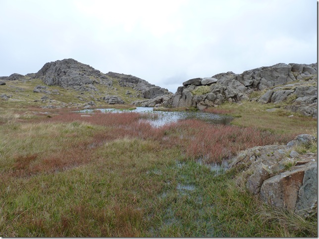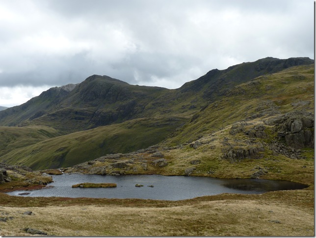 The Langdales, Sergeant Man & High Raise from one of the unnamed Tarns on Allen Crags. |