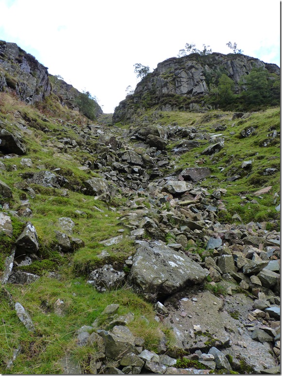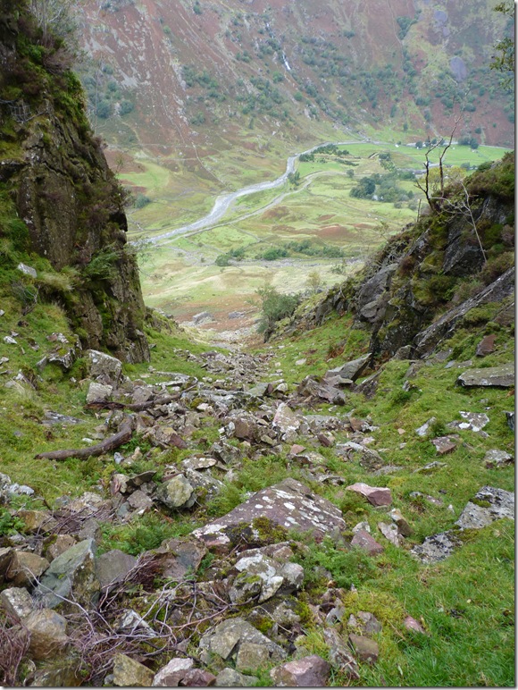 There’s no real path as such to descend Seathwaite Fell but I did know about this one,.not a path another gully..another steep gully! |