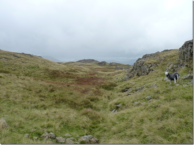 Looking back at Seathwaite Fell & the Keswick Mountain Rescue Team heading off to join up with the rest of the members I’d just passed.