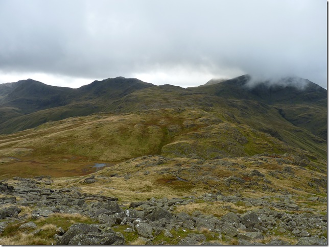 Along the skyline LtoR is Bowfell, Ore Gap, Esk Pike & Great End, dead ahead for me is Allen Crags. |