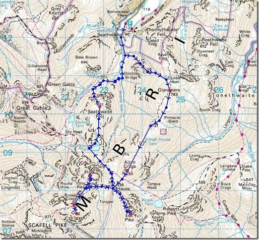 The walk was planned after putting it off a few times this summer & it being nothing more untoward as the bad weather we’ve all been experiencing, it had been planned by both me & Tim my walking buddy, then came the phone call the Friday evening that Tim couldn’t make it, he was gutted, what was I to do? its 9pm I’m packed physically & mentally, I was never more raring to go then I was right now & here I was left with a big decision? a plan B maybe? or go it alone? I’d gone way to far in preparation to even think of a Plan B so I’d made my mind up I was going to go alone..that flaming fear came back to haunt me so I set up a game plan,. Glaramara as planned then walk the ridge to Allen Crags & basically take it in from there, I’m going to be able to view my whole route from Allen Crags & Esk Hause & from there my decision will be made upon the weather & visibility & if I don’t have either I’ll use the indended descent route of Seathwaite Fell back into Borrowdale.