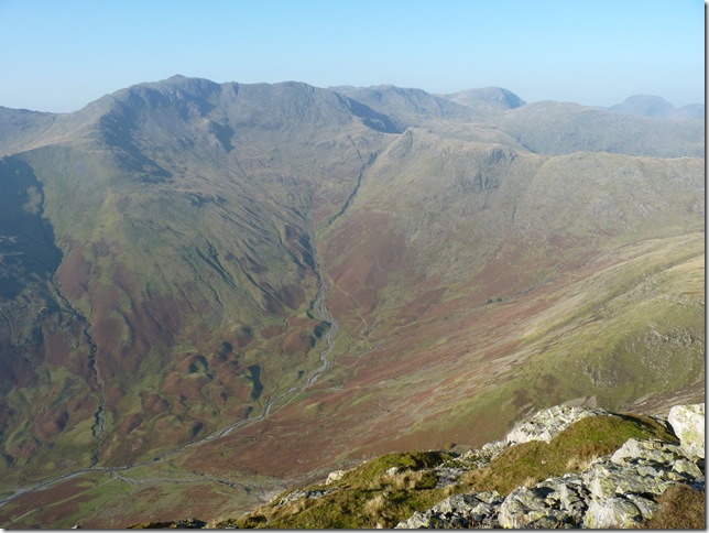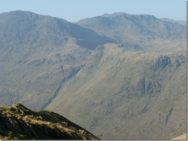 Great End taking centre with Esk Pike to the left & Allen Crags to the right. |