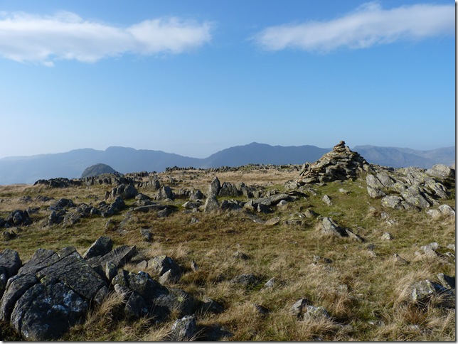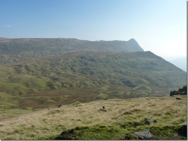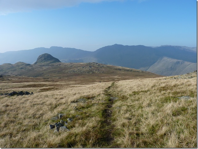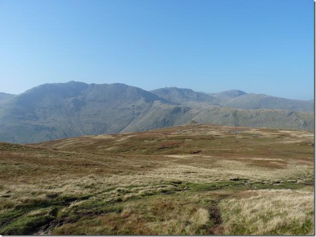 The vast openness of Martcrag Moor, again with Bow Fell & Esk Pike still domineering the skyline. |