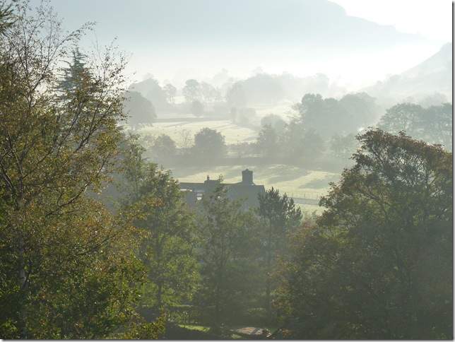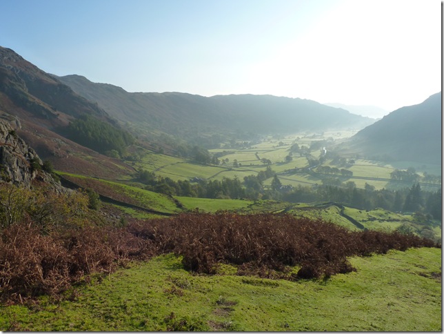 A hazy view onto the Southern Fells, the Tarn centre is Blea Tarn. |