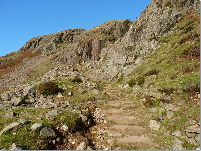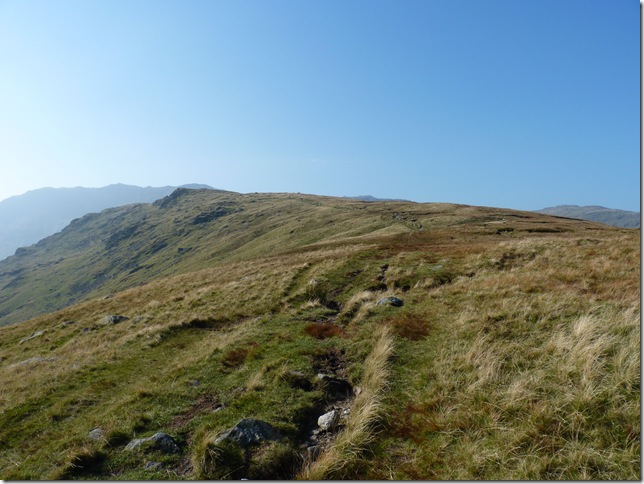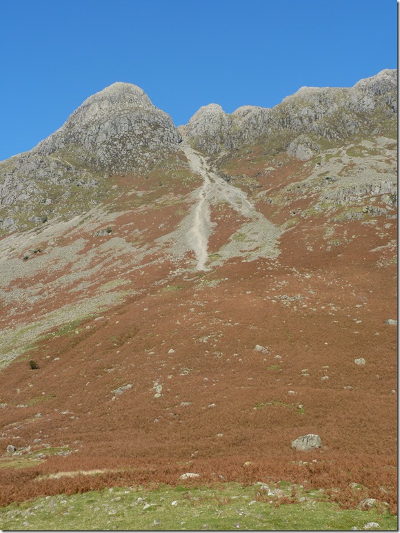 This is the gully seen at the side of Stickle Breast earlier in the walk, I can pick up a faint path faintly through the bracken & onto the prominent path you can see, I don’t think I could ever eat enough weetabix to get me up there! |